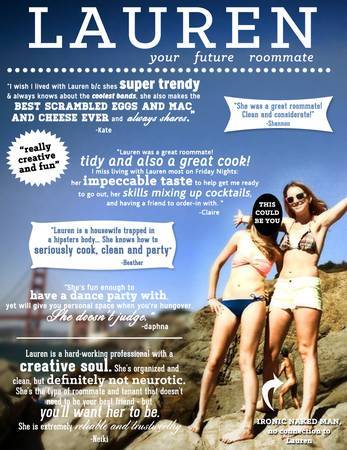 Fahey then put her design skills to work and whipped up perhaps the greatest roommate advertisement ever created: